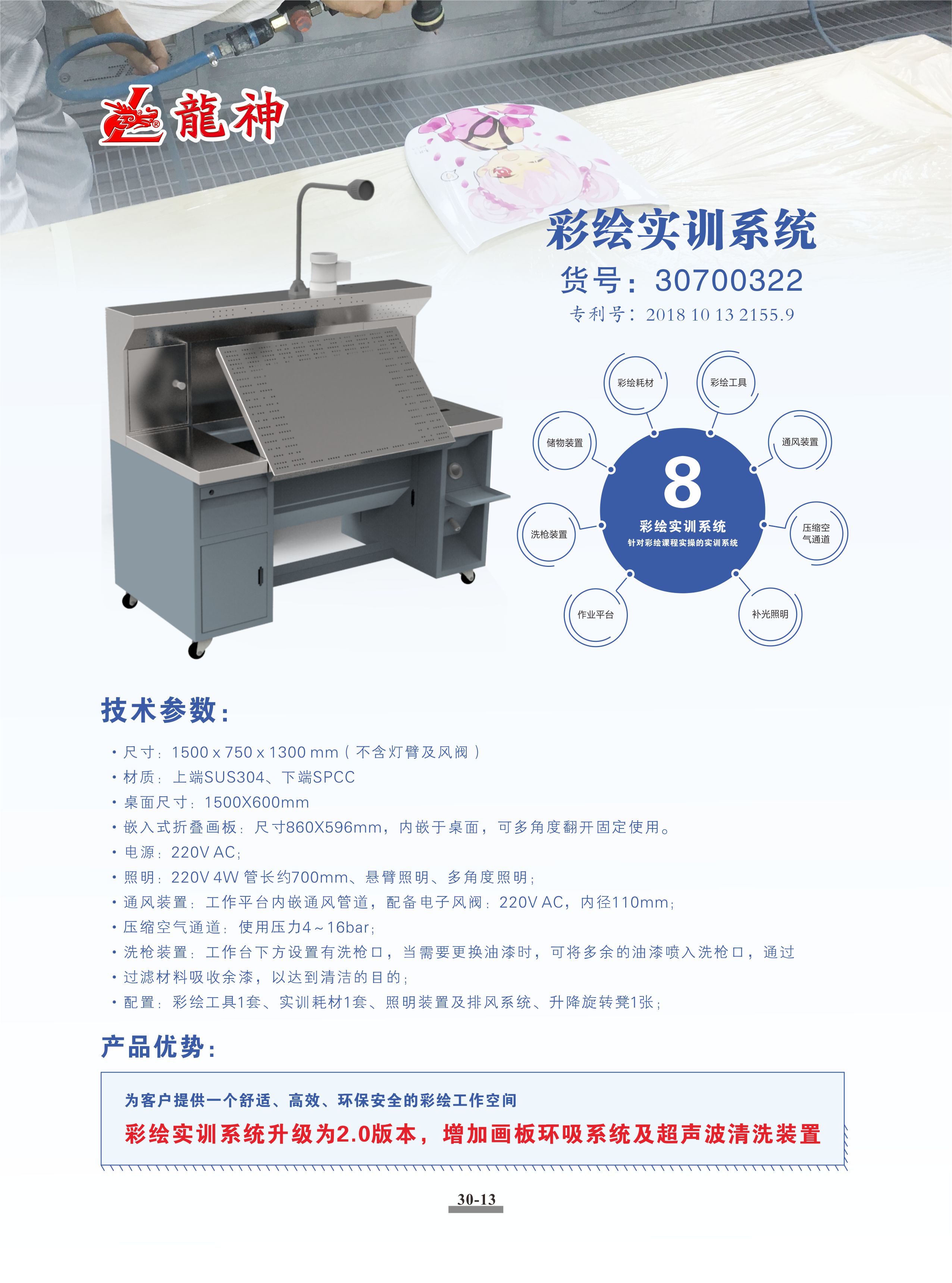 彩繪實訓(xùn)系統(tǒng)是綜合了彩繪工具、彩繪耗材、儲物裝置、洗槍裝置、作業(yè)平臺、補光照明、壓縮空氣通道及通風(fēng)裝置的,針對彩繪課程實操的實訓(xùn)系統(tǒng)。為客戶提供一個舒適、高效、環(huán)保安全的彩繪工作空間。