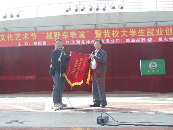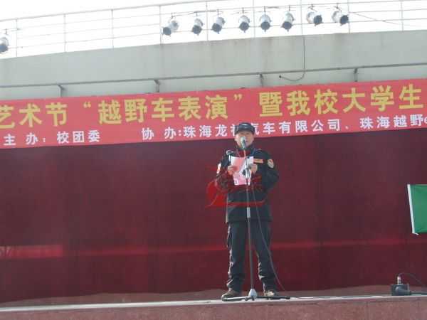 12月5日龍神公司與廣東科學技術職業(yè)學院聯合“越野e族”舉辦“第十七屆大學生文化藝術節(jié) 越野車文化交流表演暨大學生就業(yè)創(chuàng)業(yè)基地建設啟動儀式在廣科院校園隆重召開。此次大學生文化藝術節(jié)由廣科院校團委主辦,龍神公司、越野e族協辦,出席此次活動的分別來自珠海,江門,中山,順德,澳門的越野e族朋友共八十多輛高級越野車參與;在緊張刺激的汽車轟鳴聲中拉開了序幕。