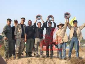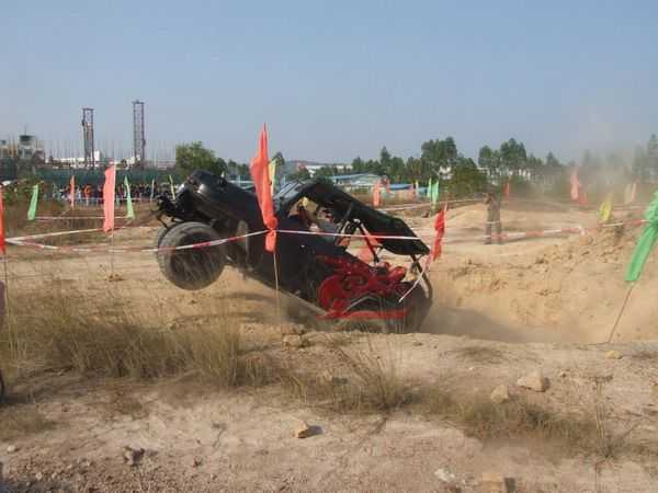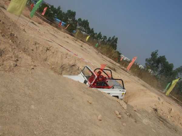 最激動人心的越野車表演在下午正式開始,所有車輛滿載著喜悅開向越野場所---廣科院后山,遠遠望去高底不平的小大山丘,讓人生畏。比賽開始時每個車主都直沖向目的地在山丘中起浮不斷,時而下沉時而沖上山丘,緊張、刺激、驚險、轟鳴聲、尖叫聲。最后五名車主分別獲得了最佳勇敢獎;最佳震撼獎;最佳車手風采獎;最佳改裝創(chuàng)意獎;最佳內飾獎。
