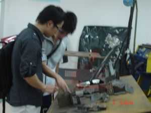學長朱福鏢(現(xiàn)龍神實操技師)與社團成員交流實踐經(jīng)驗