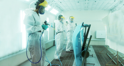 ?。?)噴涂面漆。將調(diào)好的面漆加入噴槍罐中,調(diào)整噴槍的氣壓、出漆量以及噴幅后,開始均勻地噴涂在鈑金件上。不同的面漆在噴涂時的工序也有所不同。