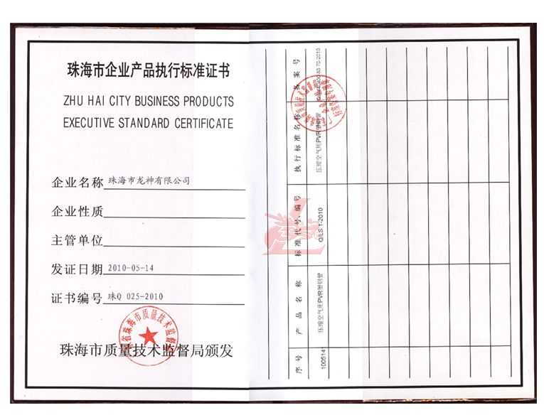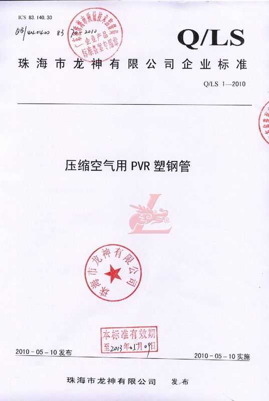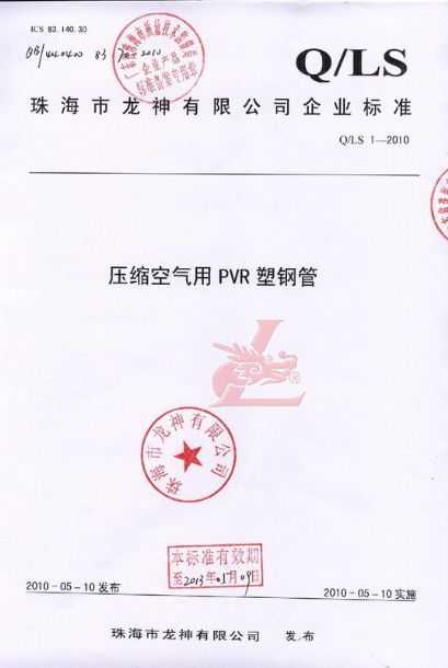 龍神壓縮空氣PVR塑鋼管成功申請(qǐng)企業(yè)執(zhí)行標(biāo)準(zhǔn) 2010年5月珠海市龍神有限公司“壓縮空氣PVR塑鋼管”得到珠海市質(zhì)量技術(shù)監(jiān)督局認(rèn)可,特此頒發(fā)“壓縮空氣PVR塑鋼管企業(yè)執(zhí)行標(biāo)準(zhǔn)”,龍神公司在嚴(yán)格執(zhí)行標(biāo)準(zhǔn)下,保證產(chǎn)品質(zhì)量。 2010-05-20 9976