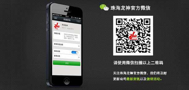 珠海龍神官方微信敬請(qǐng)關(guān)注! 2013-09-18 16750 珠海市龍神有限公司公共微信號(hào)已申請(qǐng)成功,請(qǐng)大家多多關(guān)注!掃描二維碼,也可直接搜索公眾微信號(hào)“珠海龍神”,我們將不定期發(fā)布公司最新資訊。您也可以發(fā)消息和我們進(jìn)行互動(dòng)。查看歷史消息收看您錯(cuò)過的動(dòng)態(tài)新聞,讓您第一手掌握最新動(dòng)態(tài)。