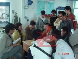 (左二)龍神彭小浣經(jīng)理與龍神班學(xué)生交流在企業(yè)實習(xí)經(jīng)驗