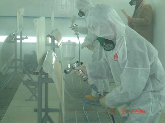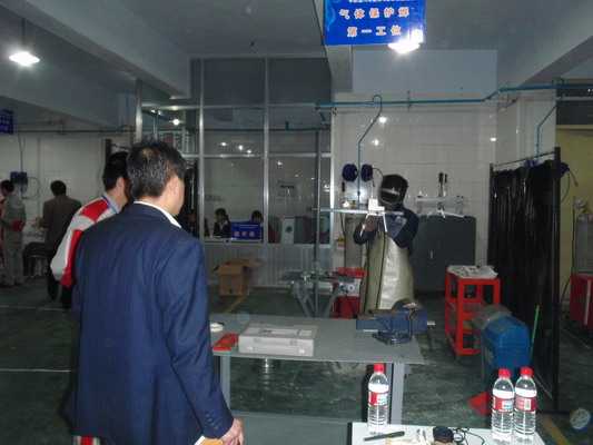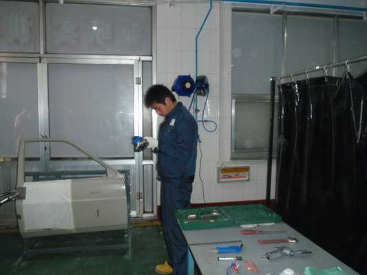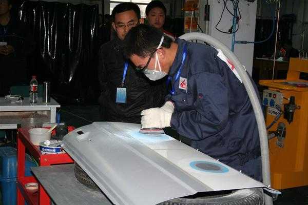 各代表隊選手利用龍神公司提供的鈑噴設備進行實操