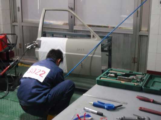 參賽選手利用龍神公司提供的鈑噴設備進行實操