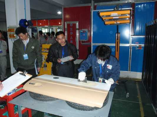 車身涂裝技能大賽面漆噴涂比賽現場 涂裝大賽現場裁判執(zhí)行班評分