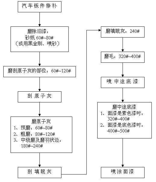 汽車修補(bǔ)干磨程序及砂紙的選擇 備注: 1、除舊漆時采用黑金剛配除漆除銹機(jī)能夠快速地除去平面、狹縫及凹凸不平表面的舊漆與銹漬;采用噴砂槍噴砂還可以很快地去除某些孔隙、縫隙或手都很難伸進(jìn)去的部位的舊漆與銹斑; 2、在磨填眼灰、中途底漆和尤其有邊角位、弧度位的表面時配打磨緩沖墊(置于圓盤砂紙和托盤之間)能夠使打磨作業(yè)更加順暢,并能獲得規(guī)則的表面質(zhì)量。 2007-08-25 12393