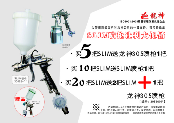 3)買20把SLIM送2把SLIM+送龍神305噴槍[編號3056001*]一把