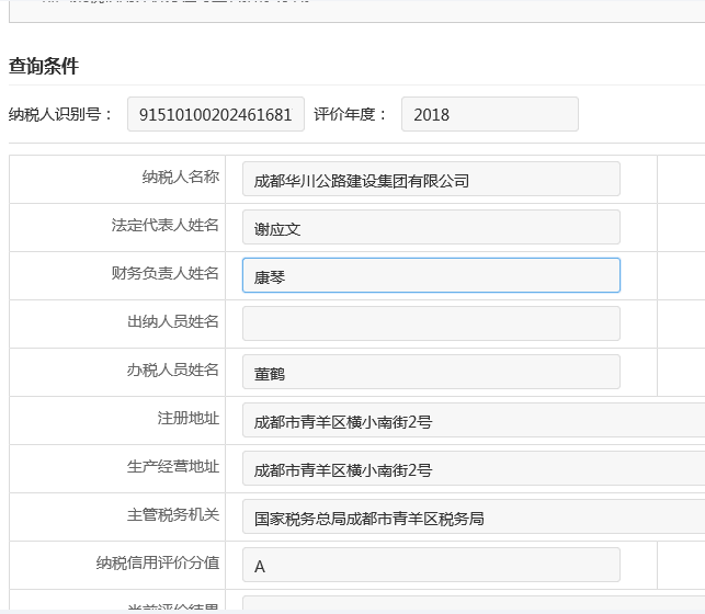 成都市稅務(wù)局對2018年度納稅信用評價結(jié)果已進行公示,集團再次榮獲納稅信用等級“A”級。