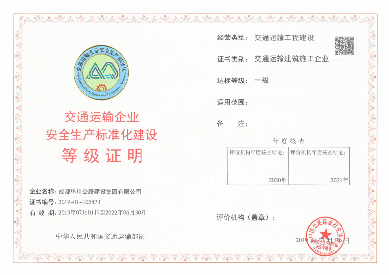 此次證書的獲得將對(duì)提升集團(tuán)公司在公路、橋梁等建筑施工領(lǐng)域的核心競爭力,為集團(tuán)公司實(shí)現(xiàn)安全管理標(biāo)準(zhǔn)化、作業(yè)現(xiàn)場標(biāo)準(zhǔn)化和操作過程標(biāo)準(zhǔn)化奠定了良好基礎(chǔ)。