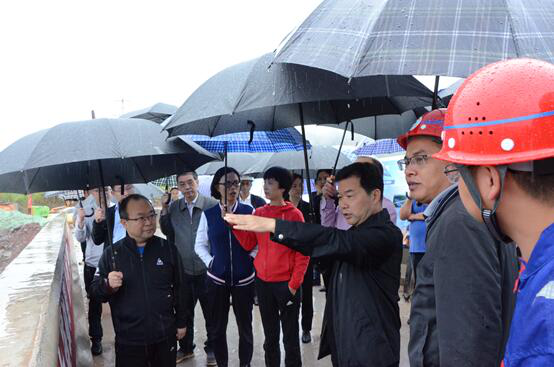 9月17日,集團(tuán)黨委書記、董事長、總裁謝應(yīng)文、常務(wù)副總裁駱曉紅等領(lǐng)導(dǎo)率集團(tuán)各職能部門負(fù)責(zé)人,在營達(dá)項(xiàng)目向年底通車目標(biāo)發(fā)起總攻、決戰(zhàn)決勝的關(guān)鍵時(shí)刻,冒雨深入營達(dá)高速項(xiàng)目施工一線現(xiàn)場督導(dǎo)慰問。營達(dá)公司總經(jīng)理謝應(yīng)武及參建單位負(fù)責(zé)人等陪同。