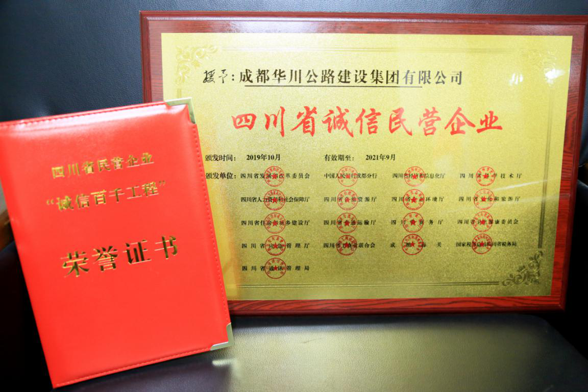 誠信華川魂 品質(zhì)華川人 ---華川集團(tuán)獲評“四川省誠信民營企業(yè)”榮譽稱號