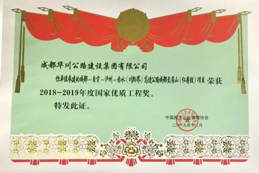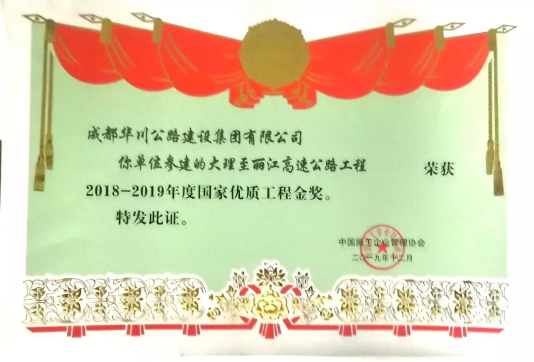 集團(tuán)在2018年組織申報的“大理-麗江高速公路”、“成都-自貢-瀘州-赤水高速成仁段”項(xiàng)目于今年12月分別榮獲“國家優(yōu)質(zhì)工程金獎”、“國家優(yōu)質(zhì)工程獎”兩項(xiàng)殊榮,實(shí)現(xiàn)了集團(tuán)參建工程在國家優(yōu)質(zhì)工程(金)獎上的突破。