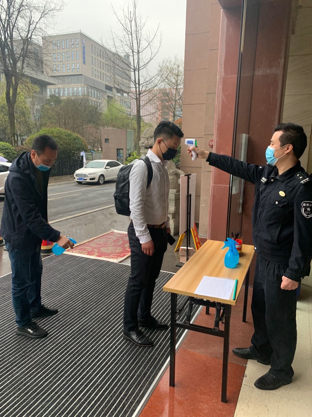 每位進入集團辦公的員工須提前在人資中心處報備,進入集團辦公樓要于集團辦公大樓入口處設(shè)置的體溫檢測點進行登記、檢查、全身及鞋底消毒。體溫超過37.3℃禁止入內(nèi),行政后勤中心將對異常情況及時報告、處置,有疑似癥狀的員工將先隔離至臨時隔離房間。門衛(wèi)將加強辦公樓出入管理,員工在進入集團辦公大樓后不能隨意外出。